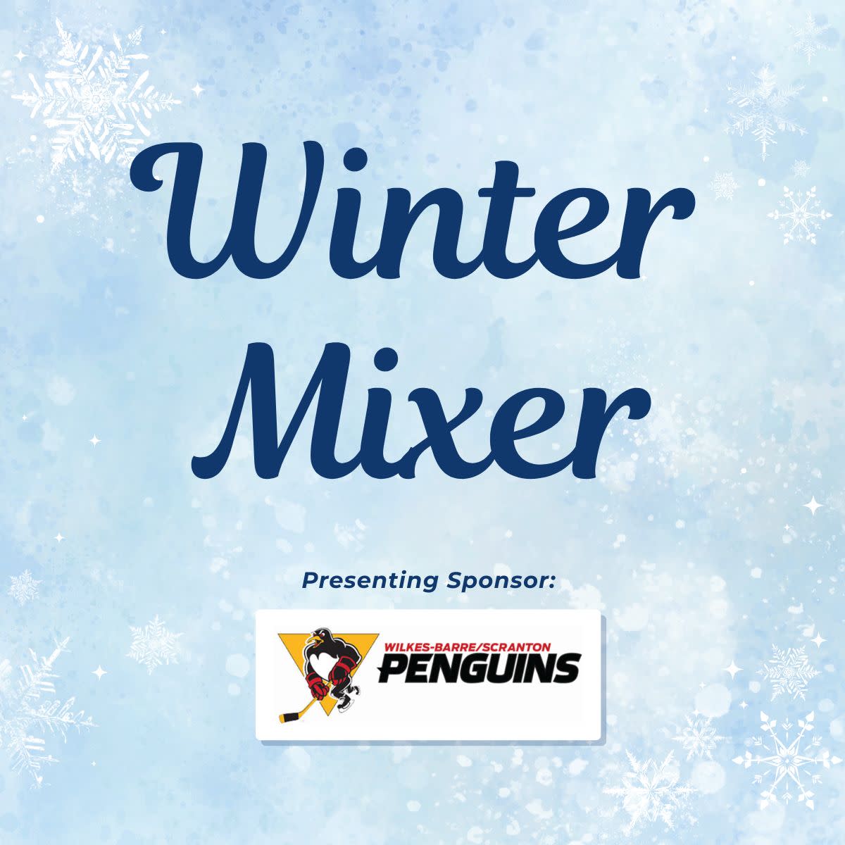 🐧 On Tuesday, December 16th, we'll be heading to a Wilkes-Barre/Scranton Penguins hockey game for our winter mixer. We'll be gathering at their Ice Level Lounge, providing attendees with a great view of the game while still allowing a relaxed and open atmosphere to mix and mingle. There will also be an ugly sweater contest for those who wish to participate! All ages welcome.