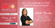 Our 2021 Athena® Award will be presented to an amazing individual who has put our community first in all that she does, and has made it a point to mentor other women in attaining their full potential and growing and developing professionally. Let's meet our 2021 Athena® Award recipient: Kathi Bankes, Director of Catering and Special Events at Culinary Creations by Metz & Ruth's Chris SteakHouse!