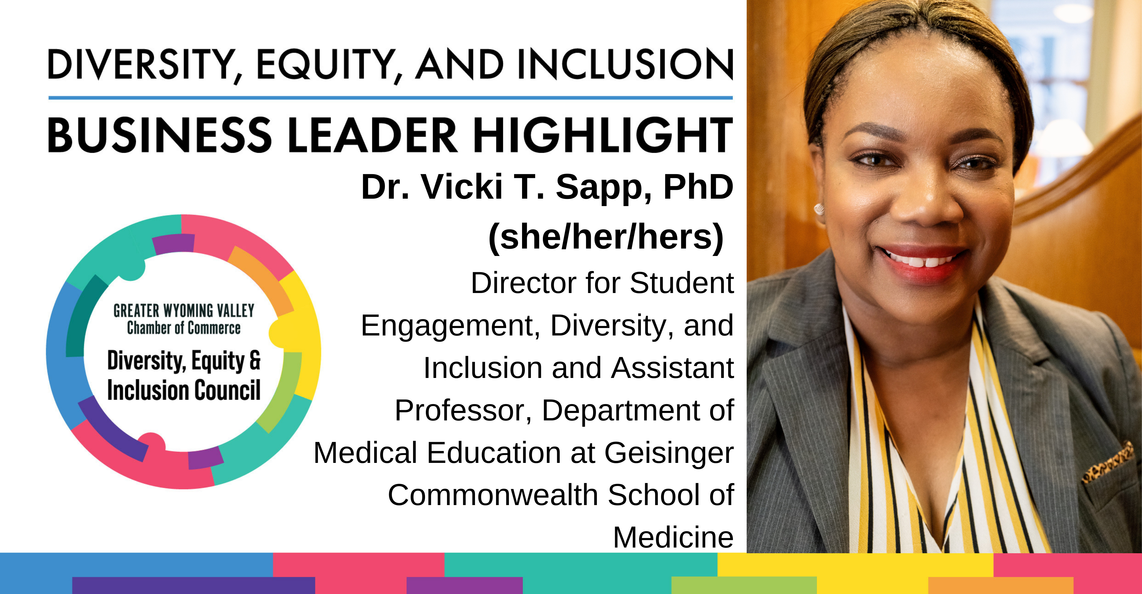 Throughout the month of April for Diversity Month, we will be highlighting some amazing individuals in our community that are spearheading diversity, equity, and inclusion causes and initiatives, as well as business leaders and owners with diverse backgrounds. Next, we spoke to Dr. Vicki T. Sapp, PhD | Director for Student Engagement, Diversity, and Inclusion and Assistant Professor Department of Medical Education at Geisinger Commonwealth School of Medicine.