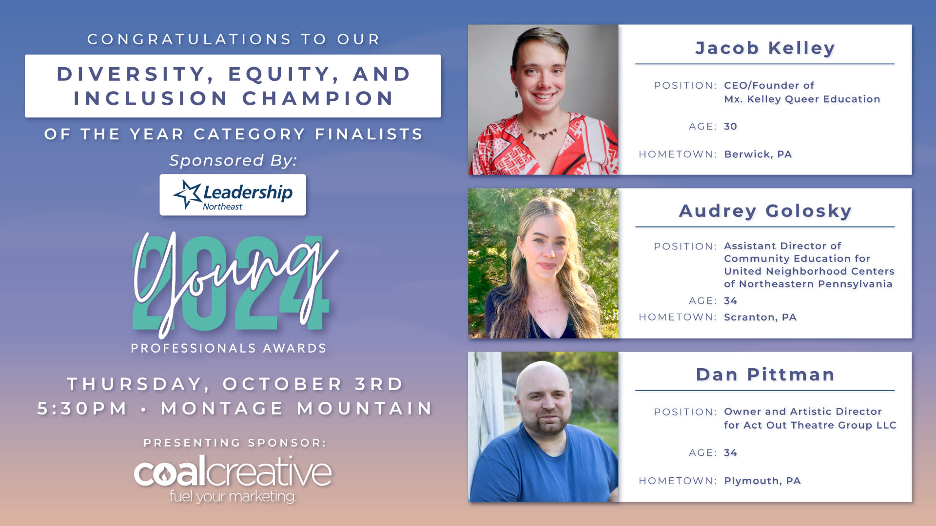 Make sure to join us on October 3rd at Montage Mountain to celebrate these finalists and to hear the category winners announced live on stage. Click here to register today!
