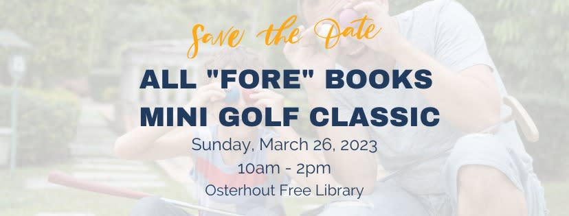 The Rotary Club of Wilkes-Barre, PA invites you, your family, and friends to the 4th Annual All 'Fore' Books Mini Golf Classic! Enjoy 18 fun and very unique holes played within, through, and around the library stacks at the Osterhout Free Library!
