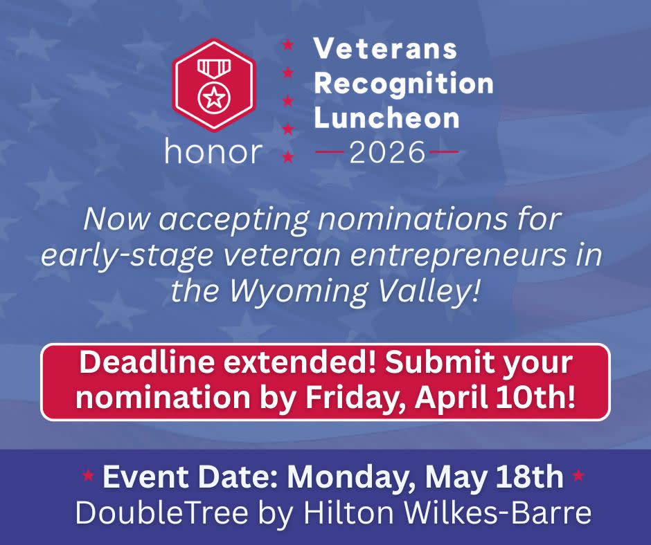 Join us for the annual Honor Recognition Luncheon on Monday, May 18th! This event, hosted by Wilkes-Barre Connect, brings together the community to honor and celebrate local veterans and veteran entrepreneurs in the Wyoming Valley. This event serves not only as a gesture of gratitude towards the contributions of our local veterans, but also as a means of support to those who are transitioning into the business world.