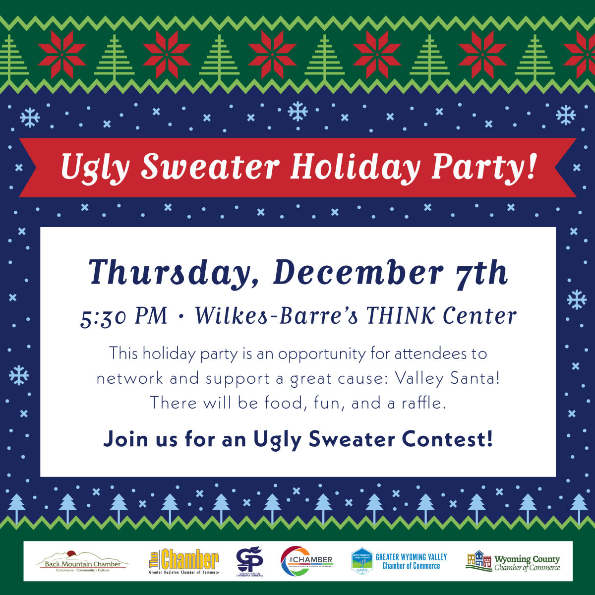 Join us for our 3rd Annual Chamber Ugly Sweater Holiday Party hosted by the ELEVATE Young Professional Council and sponsored by Berkshire Hathaway GUARD Insurance Companies, in collaboration with our regional chamber partners on Thursday, December 7th at 5:30 PM in the THINK Center. There will be food, fun, and, of course, an Ugly Sweater Contest!