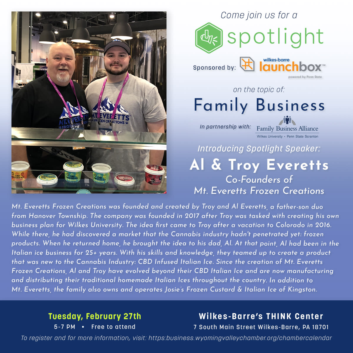 Family-owned businesses have a tremendous impact on our communities in Northeastern Pennsylvania. In the first Spotlight event of 2024, we want to give some of our area’s brightest family business owners a platform to talk about their ongoing journey, sharing the challenges they have overcome, and lessons learned along the way.