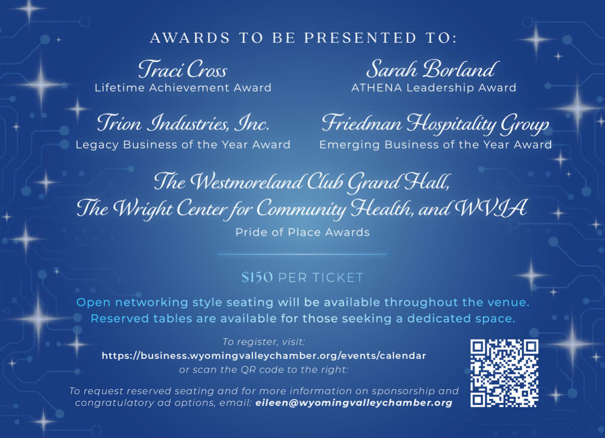 Join us for a night to remember as we celebrate amazing leaders and organizations of the Wyoming Valley! This highly anticipated evening brings together 500+ of our region’s top business leaders, innovators, and professionals for an unforgettable celebration of success, community, and connection.