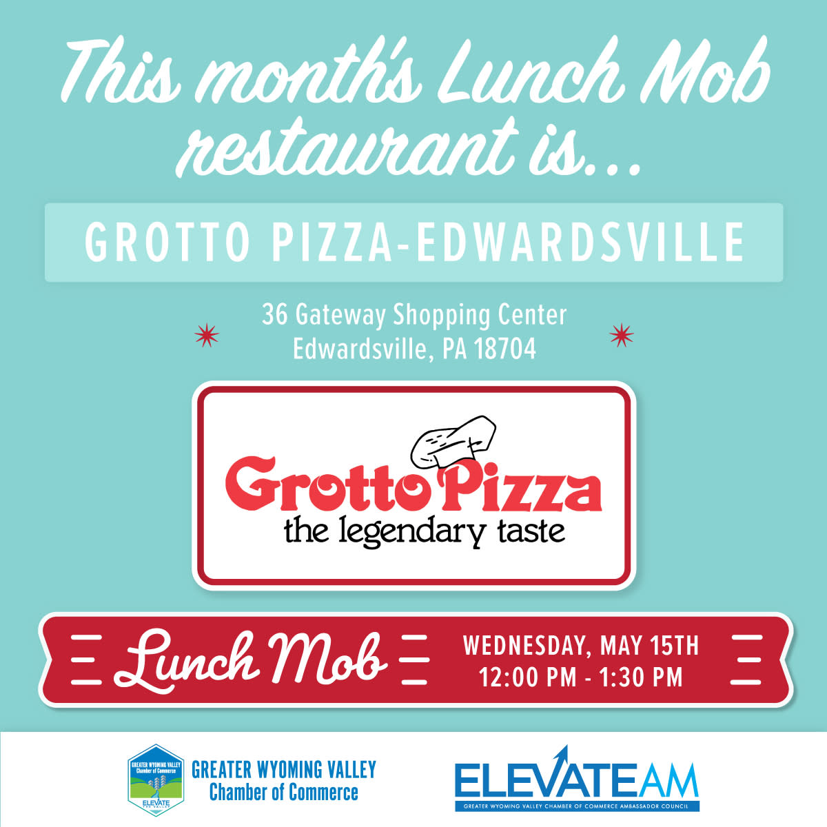 DESCRIPTION:We are excited to announce this month's Chamber Lunch Mob will be held at Grotto's Pizza Edwardsville (36 Gateway Shopping Center\, Edwardsville PA 18704)There is still time to register to join us for a fun event! \nThe Greater Wyoming Valley Chamber of Commerce Ambassador Council spearheads this new networking series to allow participants to experience the many fantastic offerings of our area while connecting with members of our business community. Each month a new restaurant will be featured!The event is FREE to attend. Guests will pay for lunch on their own. However\, registration is required for us to communicate with the restaurant owner on how many people to expect. Some events may have limited seats available. To respect the time and effort of the restaurant staff\, we ask that all attendees honor their registrations. Should you need to miss the event\, a 24-hour notification must be given\, it allows for the seat to be filled and for us to alert the restaurant of headcount changes.