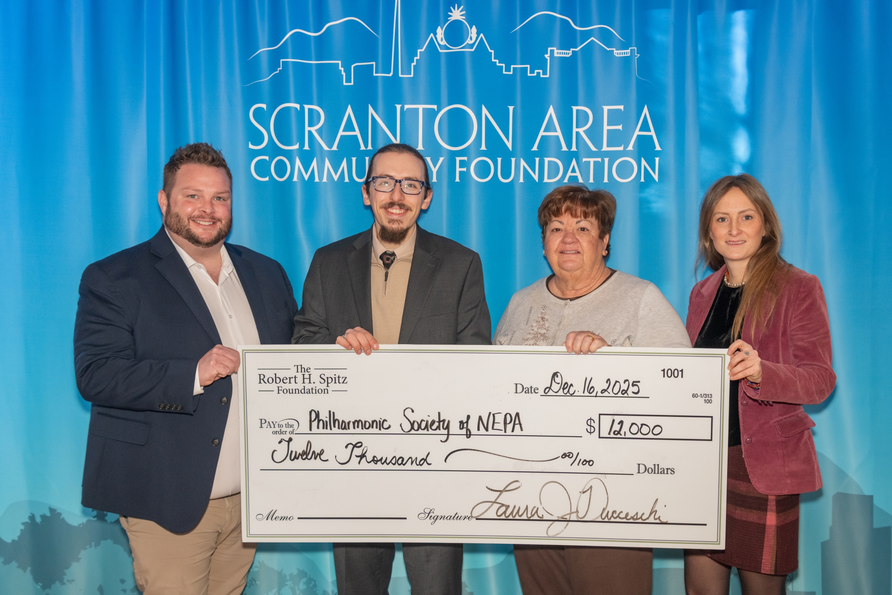 Scranton Area Community Foundation presents a grant on behalf of the Robert H. Spitz Foundation to NEPA Philharmonic Executive Director Chason Goldschmitz (second from left)